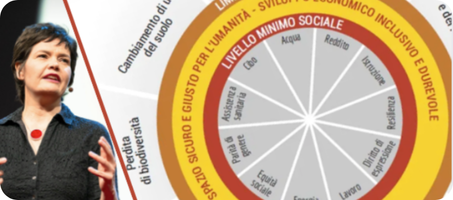 Nel 2024, abbiamo dato inizio al primo Festival italiano dedicato all’Economia della Ciambella di Kate Raworth, un modello rigenerativo volto a creare armonia tra il benessere delle persone e i limiti del pianeta. I nostri percorsi educativi nascono da questa visione e dal GreenComp, il quadro europeo delle competenze per la sostenibilità.