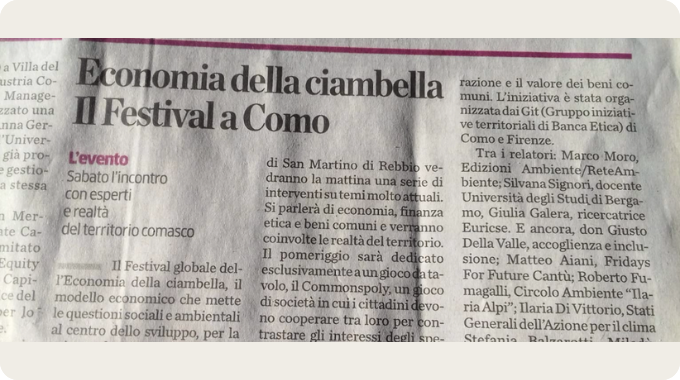 Il pomeriggio sarà dedicato al gioco “Commonspoly” e ha come focus i “beni comuni”.